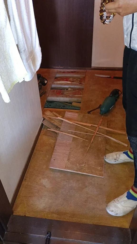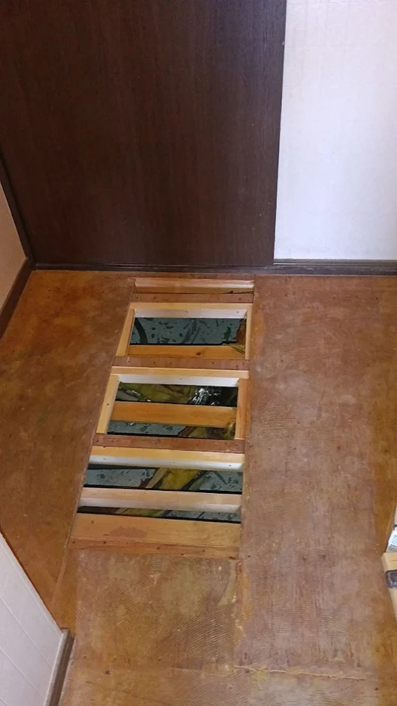 今回は、野田市の常連のお客様から脱衣所の床がベコベコなので、直して欲しいとのご依頼です。