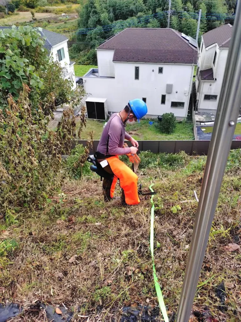 かなり急なので慎重に作業します。