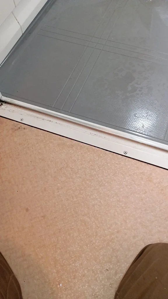 今回は、浴室ドアの枠下のパッキンが、切れて水があふれてくるので、交換して欲しいとのご依頼です。