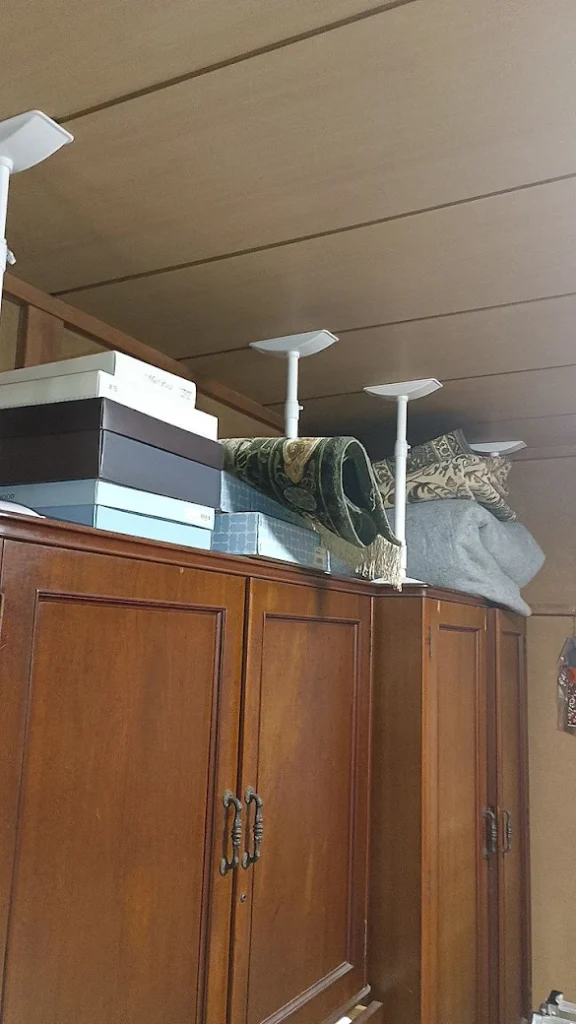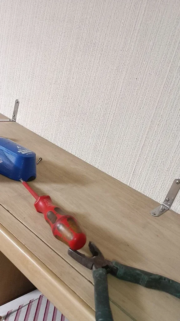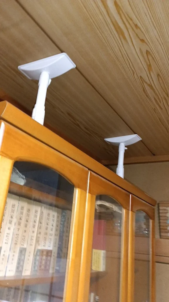 ケアマネージャーさんと家の中の家具をチェックして突っ張り棒と金具で、固定していきます。