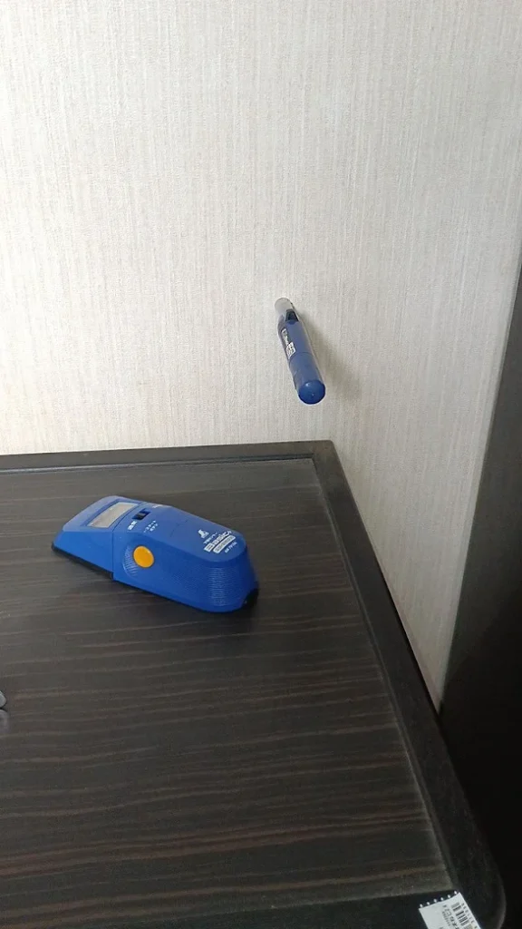 金具で、止める場合は、下地部分に固定しないといけないので、下地探しです。