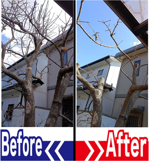 続いて、流山市の常連からカットのご依頼です。こちらは、木を残したいので、高い所のカットのご依頼です。