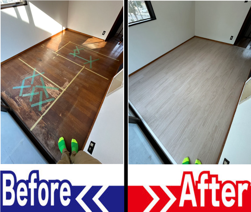 こんにちは。 野田山崎店です。 今回は、流山市で、2階の部屋の床がベコベコなので、直して欲しいとのご依頼です。 お客様が、ベコベコの場所を印をつけて、自分で、なんとかしようとしたが、やはり厳しそうだったので、ご依頼されま […]