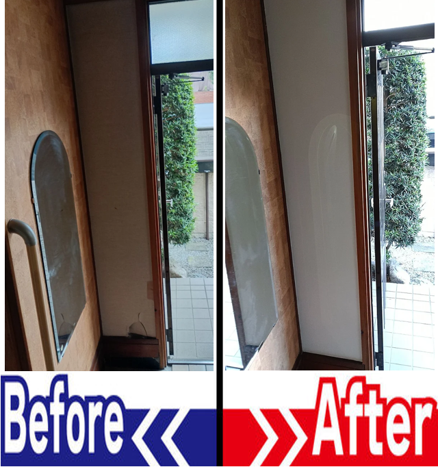 こんにちは。 野田山崎店です。 今回は、野田市の常連のお客様のクロス張替を受けたので、ご紹介致します。 トイレと玄関回りです。 2階の2部屋です。置いてあった棚とかも整理いたしました。 和室は、襖も交換いたしました。 リ […]